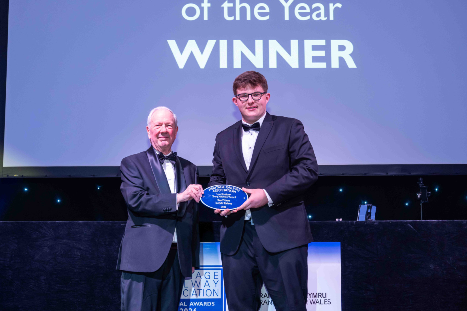 For the first time, the longstanding Lord Faulkner Young Volunteer of the Year award has joint winners after the judging process produced a dead heat. Jamie Taylor from the Fife Heritage Railway and Ben Wilson from the Tanfield Railway were both awarded the top prize. Samuel Jones from the Bredgar and Wormshill Light Railway and Shea McKee from the Downpatrick and County Down Railway just missed out and were awarded highly commended trophies.